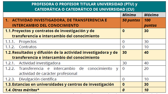 Baremo en el apartado 1.2. Resultados y difusión de la actividad investigadora y de transferencia e intercambio del conocimiento