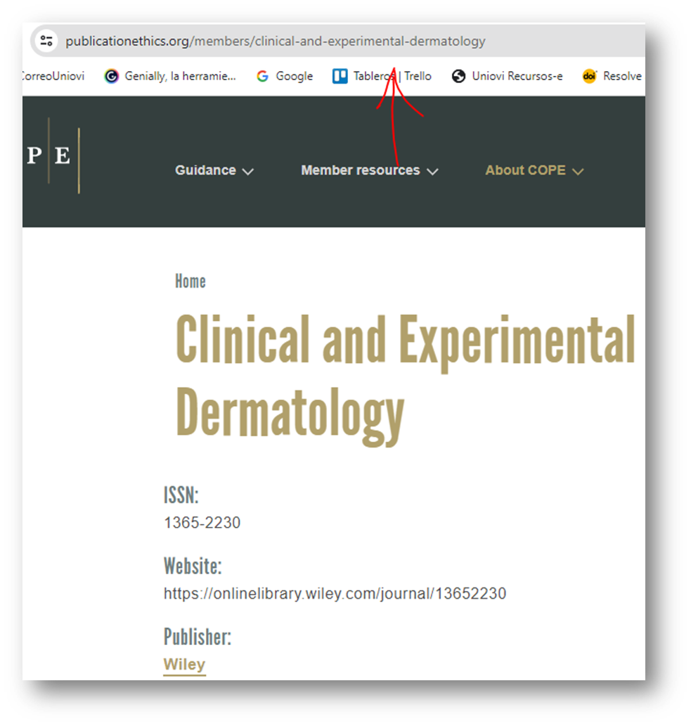 Una vez esto hecho estamos dentro de la página de la revista en COPE y podemos copiar el enlace para consignarlo en la solicitud: