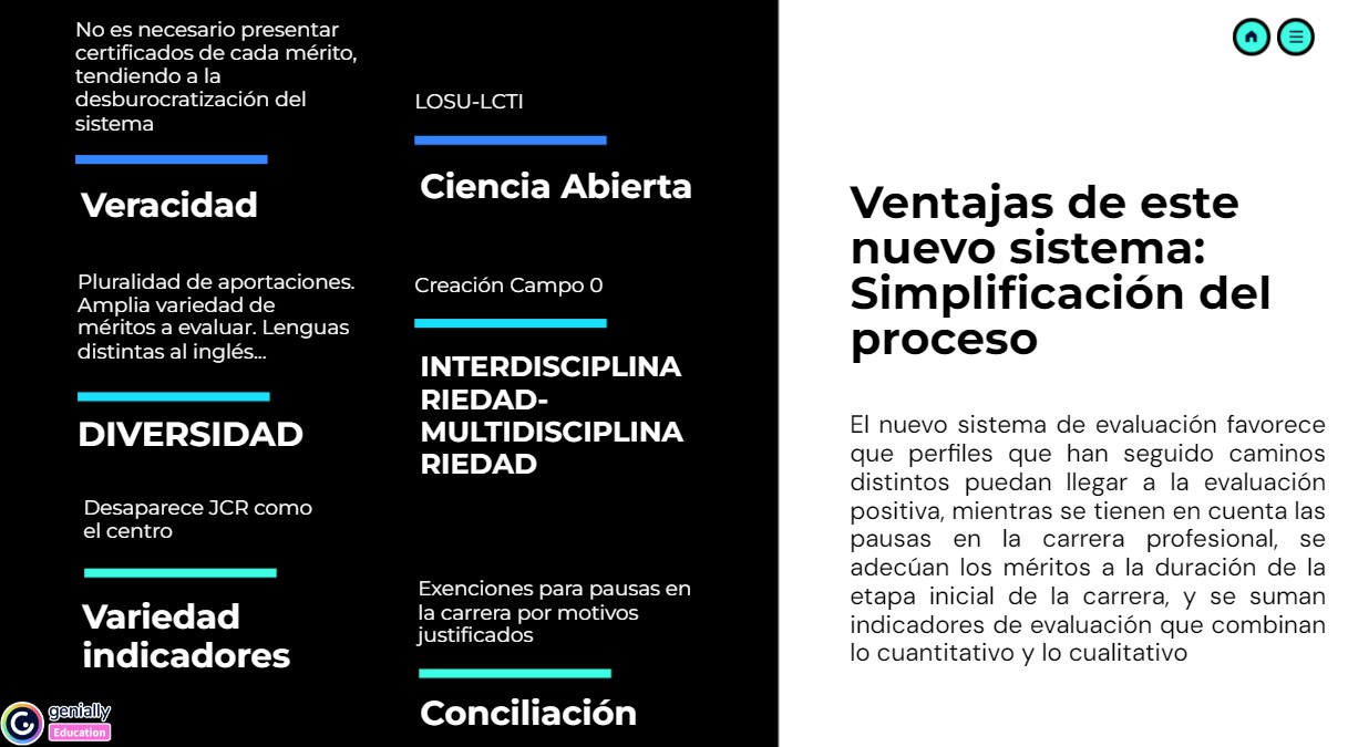 - Inclusividad y diversidad: Amplia variedad de méritos a evaluar, en contraposición al modelo anterior, muy centrado en publicar papers y acumular horas de docencia. Esto facilita que personas con caminos profesionales distintos puedan llegar a la acreditación estatal. Los 30 puntos en actividad científica siguen teniendo un peso muy importante, pero se valoran más actividades. Así, se valorará el grado de multidisciplinariedad o interdisciplinariedad de las contribuciones, y la publicación en lenguas distintas al inglés