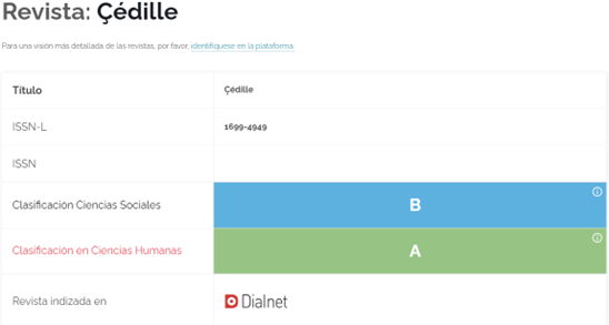 Es una clasificación de revistas científicas de Ciencias Sociales y Humanas en función de su calidad, integrando los productos de evaluación existentes considerados positivamente por las diferentes agencias de evaluación nacionales como CNEAI y ANECA.