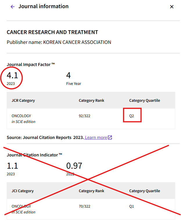 Son errores muy frecuentes: año equivocado, categoría equivocada, edición equivocada, elegir JCI en lugar de JCR, o categoría de JCI en lugar de JCR..