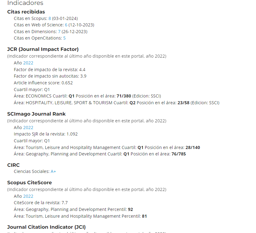 Para los trabajos de los años 2023, 2024 y 2025, se obtienen los datos del JCR de 2023 (edición en curso). Por ejemplo, para un artículo de 2025, tomamos el JIF y categorías de 2023. Es MUY IMPORTANTE no confundir JIF o Journal Impact Factor con JCI o Journal Citation Indicator.