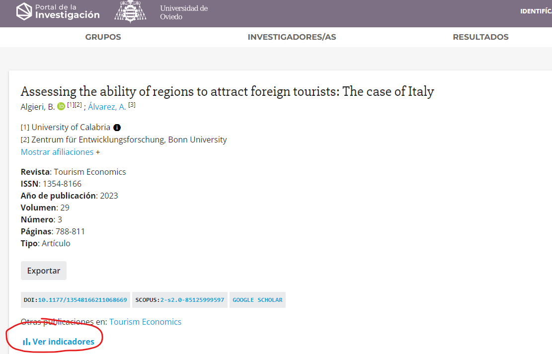Una vez localizada la aportación pulsamos en "Ver indicadores":