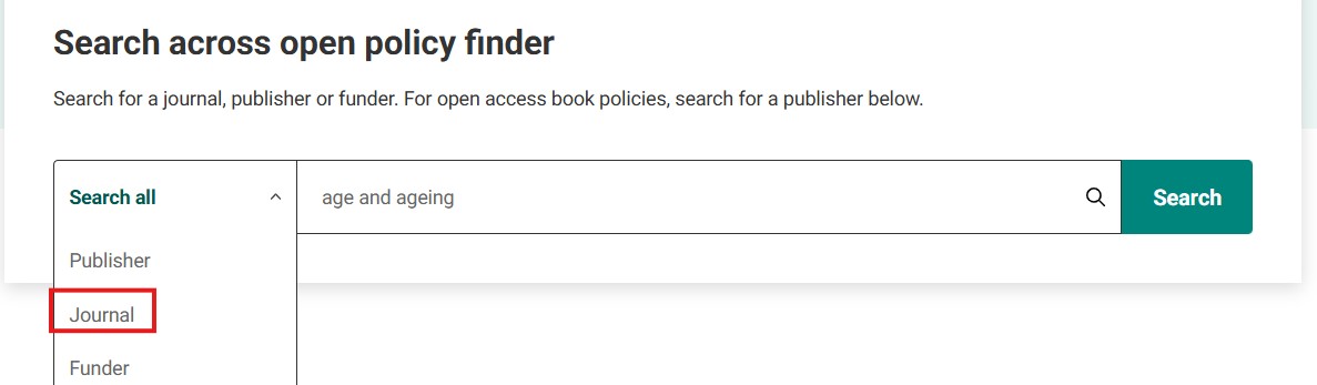 Para buscar una revista, introduciremos el ISSN o el título en la caja de búsqueda después de seleccionar Journal en el desplegable: