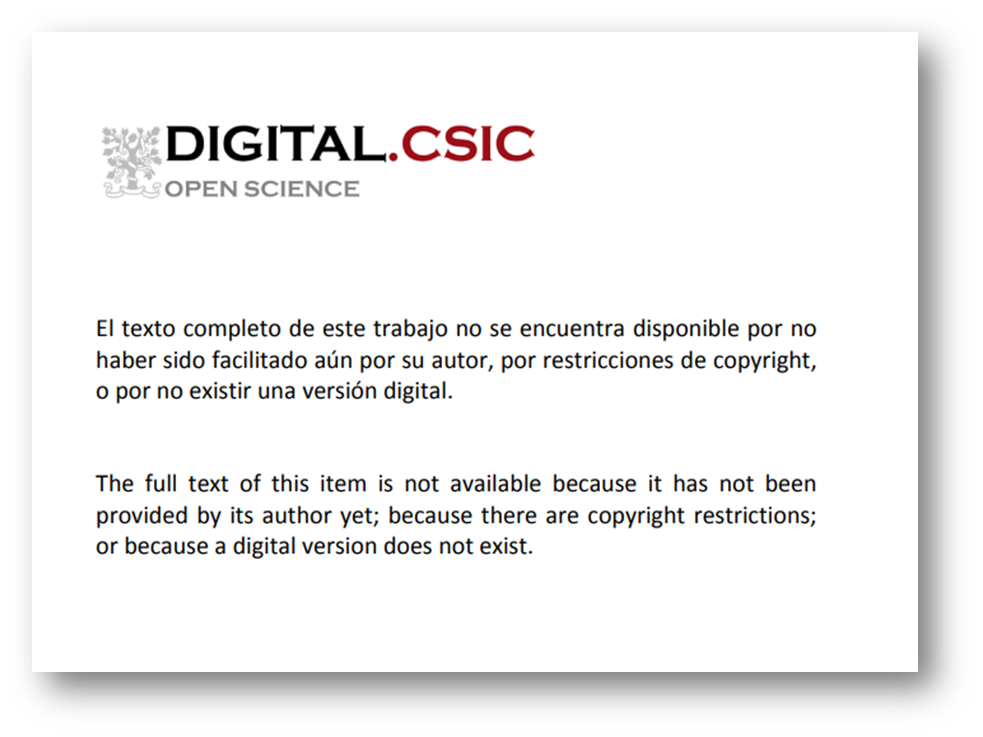 Al entrar a un registro que no es acceso abierto en el repositorio Digital CSIC, vemos esto en el fichero:
