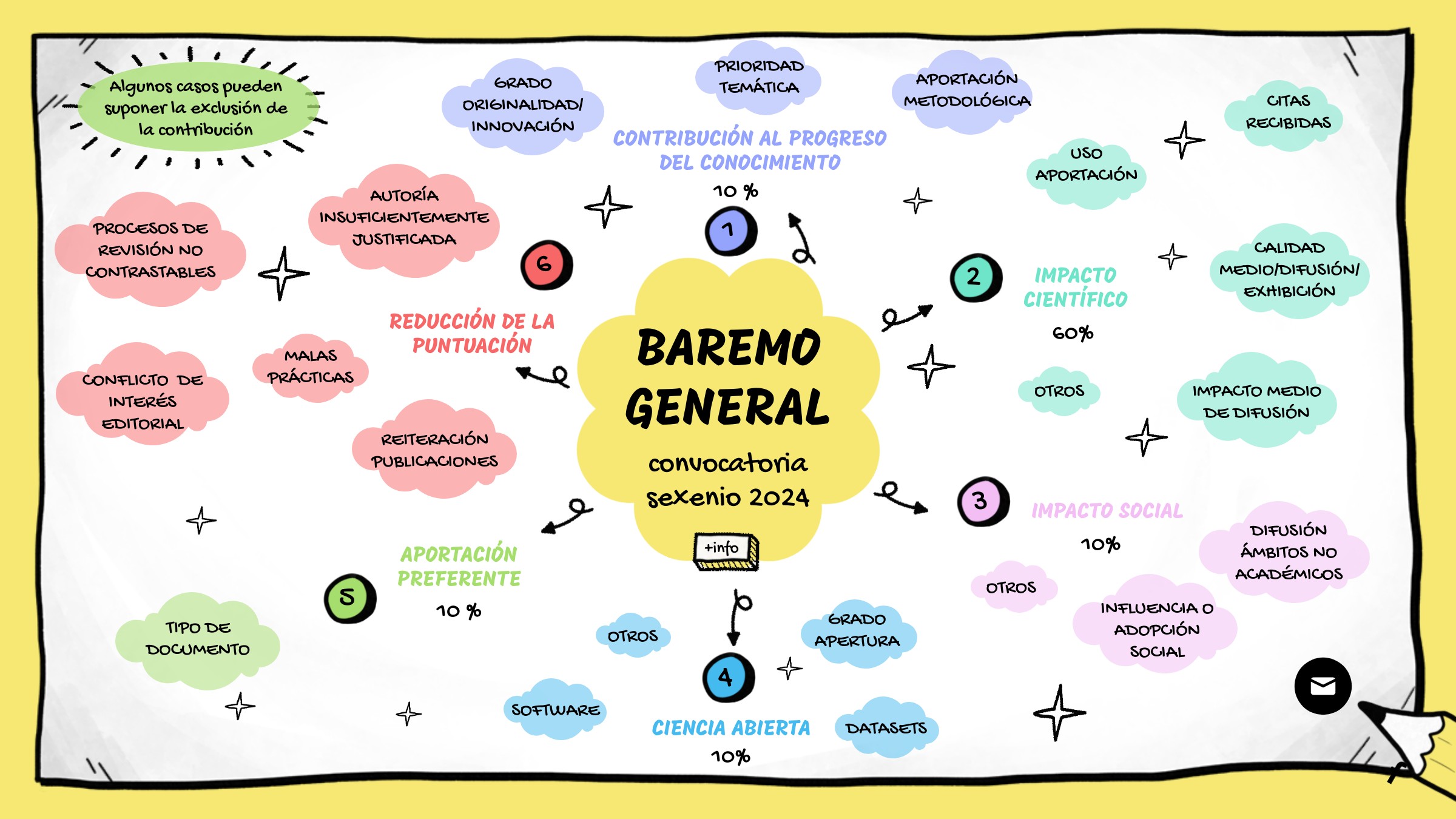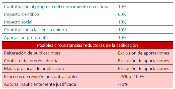 El impacto científico (60% = 6 puntos) es el apartado más valioso, contando hasta 6 puntos del total de 10.