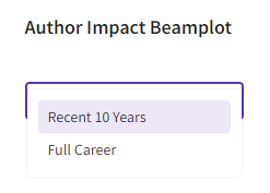 Se pasa el cursor sobre los beamplots para ver la información. Si buscamos datos sobre un artículo de 2021, pasaremos el ratón por encima del eje y en el año deseado, buscando la publicación hasta encontarla. En el ejemplo, el paper está en el percentil 63, por lo tanto entre el 37% más citado en su materia y año de publicación: