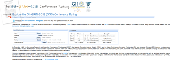 A raíz del acuerdo suscrito con CORE (Computing Research and Education Association of Australasia) para la creación del portal ICORE Conference Ranking, la clasificación GGS Conference Rating dejó de actualizarse en junio de 2024. No obstante, continúa siendo una referencia válida para evaluar las contribuciones presentadas en congresos de informática celebrados entre 2015 y 2023.