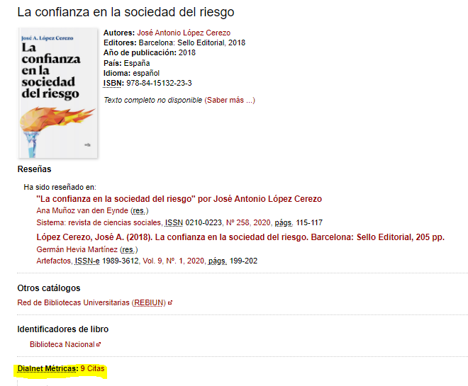 Las citas recogidas en Dialnet se pueden comprobar en la propia plataforma, en la página de cada publicación, en la parte inferior: