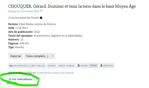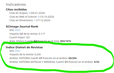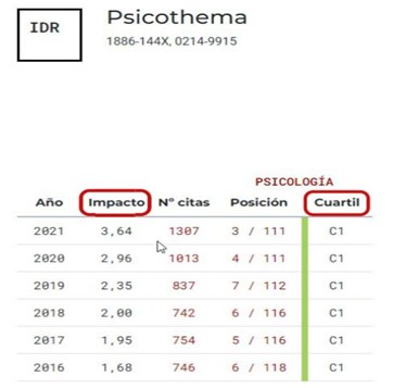 Entre otros, en el caso de que la revista lo tenga, aparecerá infromación sobre el IDR del año de la publicación: