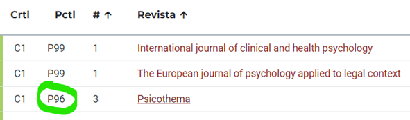 Haciendo click en la posición podemos tener información del Percentil que ocupa la revista en ese ámbito: