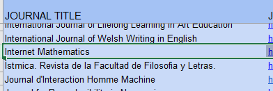 Esta es una herramienta muy útil, puesto que recopila revistas diamante que no se encuentran en otras herramientas. En el caso del ejemplo, Internet Mathematics, no podemos localizar la información en DOAJ: