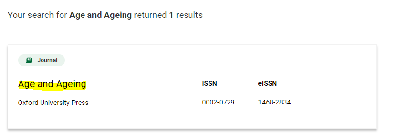Para buscar una revista, introduciremos el ISSN o el título en la caja de búsqueda después de seleccionar Journal en el desplegable: