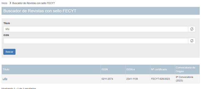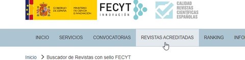 Buscamos una revista por título o ISSN en la web de FECYT entre las que tienen sello de calidad: