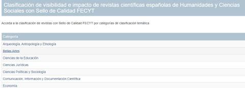 Clasificación por áreas temáticas para las revistas que tienen sello de Calidad FECYT que mide el impacto y la visibilidad de estas publicaciones.