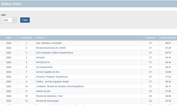 Podemos también consultar los diferentes rankings por áreas de conocimiento: