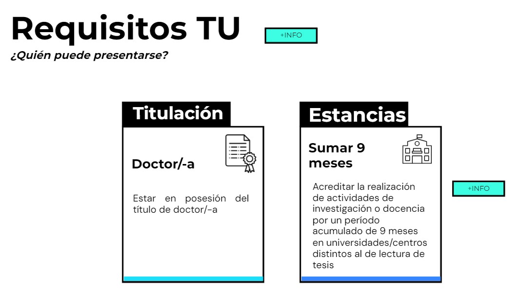 - Estar en posesión del título de doctor/-a. Se admiten títulos extranjeros si se ha obtenido declaración de equivalencia.