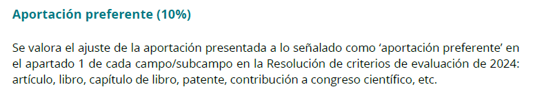 - Dentro de las aportaciones ordinarias, cuáles se consideran preferentes. Fuente: Apartado 1 (Sobre las aportaciones) de cada campo o subcampo en los criterios de la convocatoria.